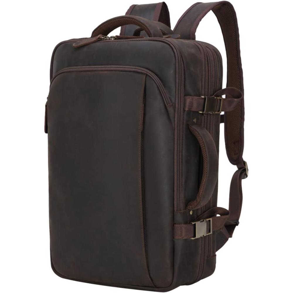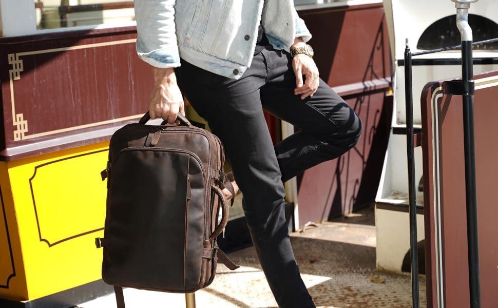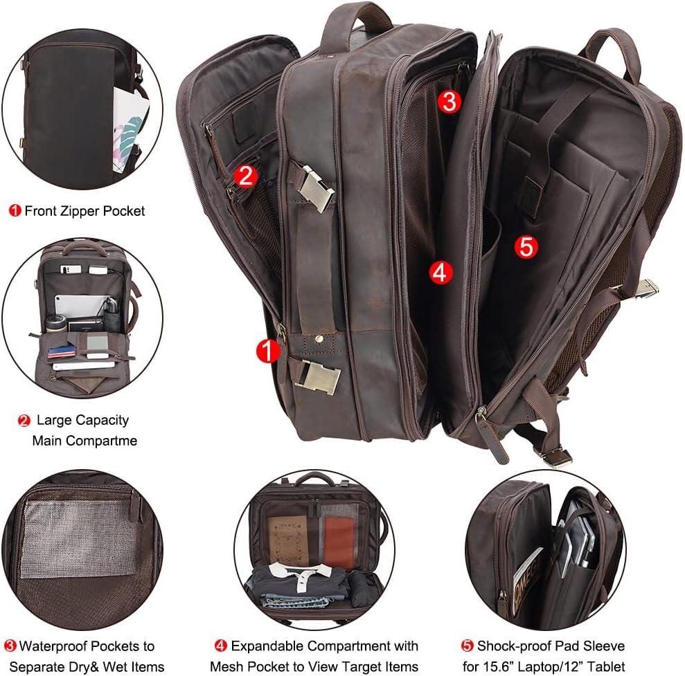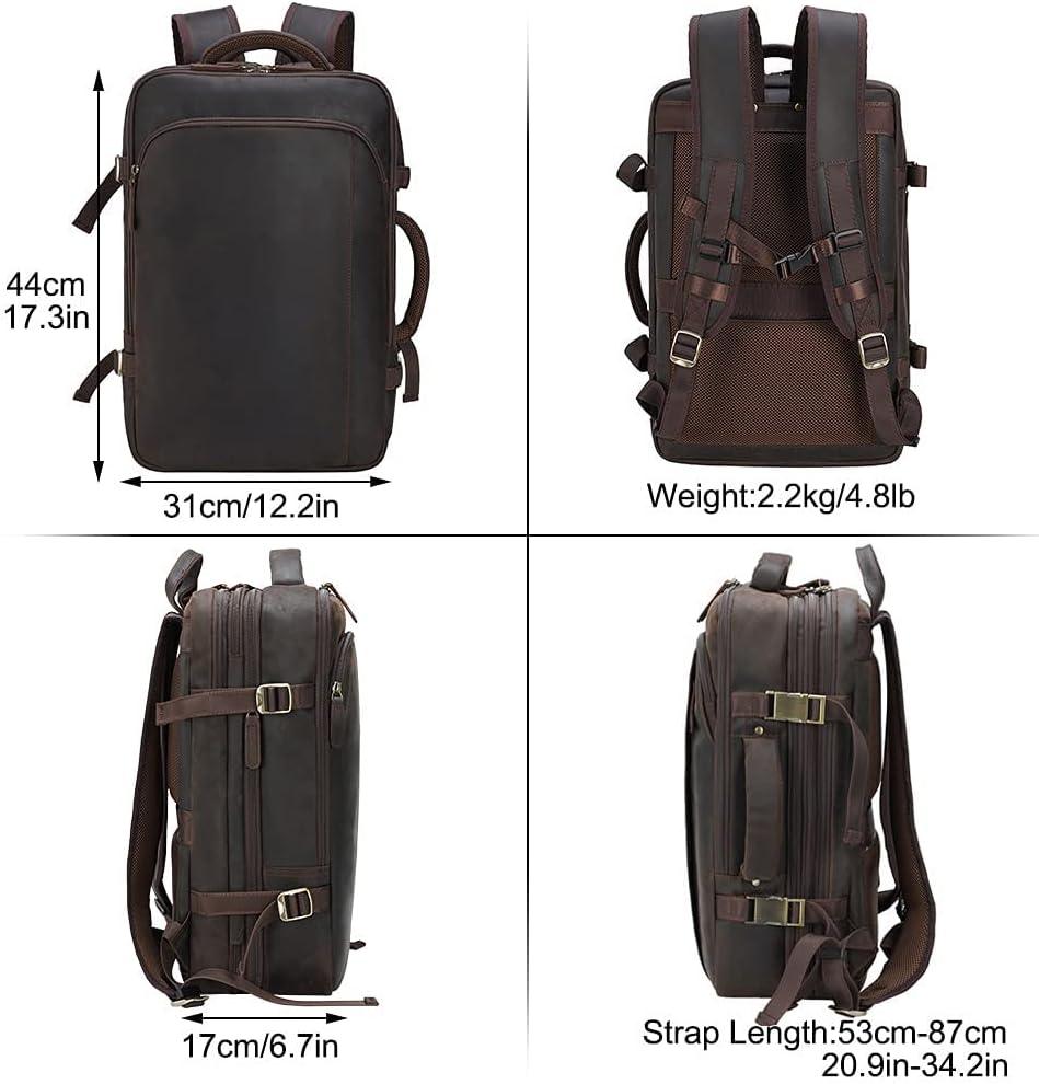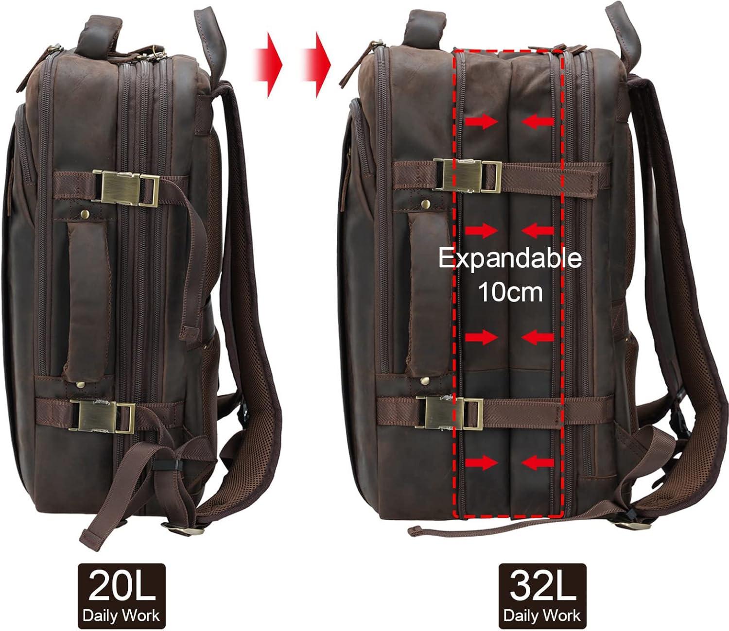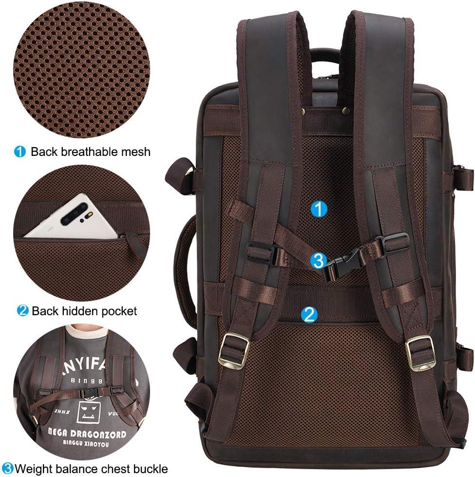 Masa Kawa Leather 15.6 Inch Laptop Backpack for Men Expandable 36L Business Travel Rucksack Daypack Weekender Bag(Brown)