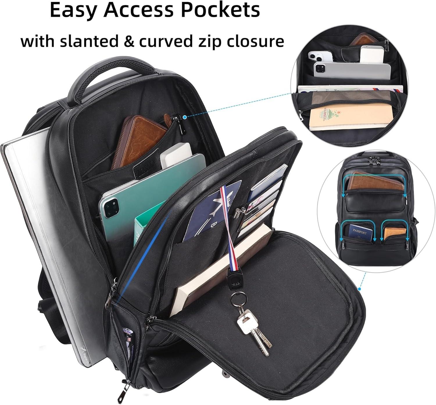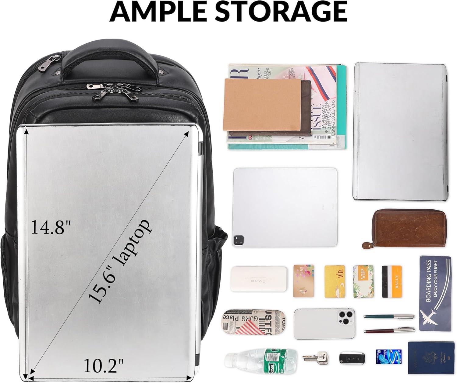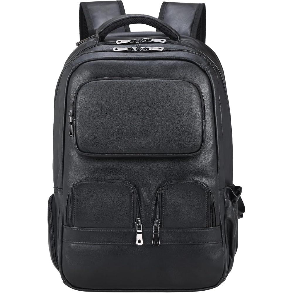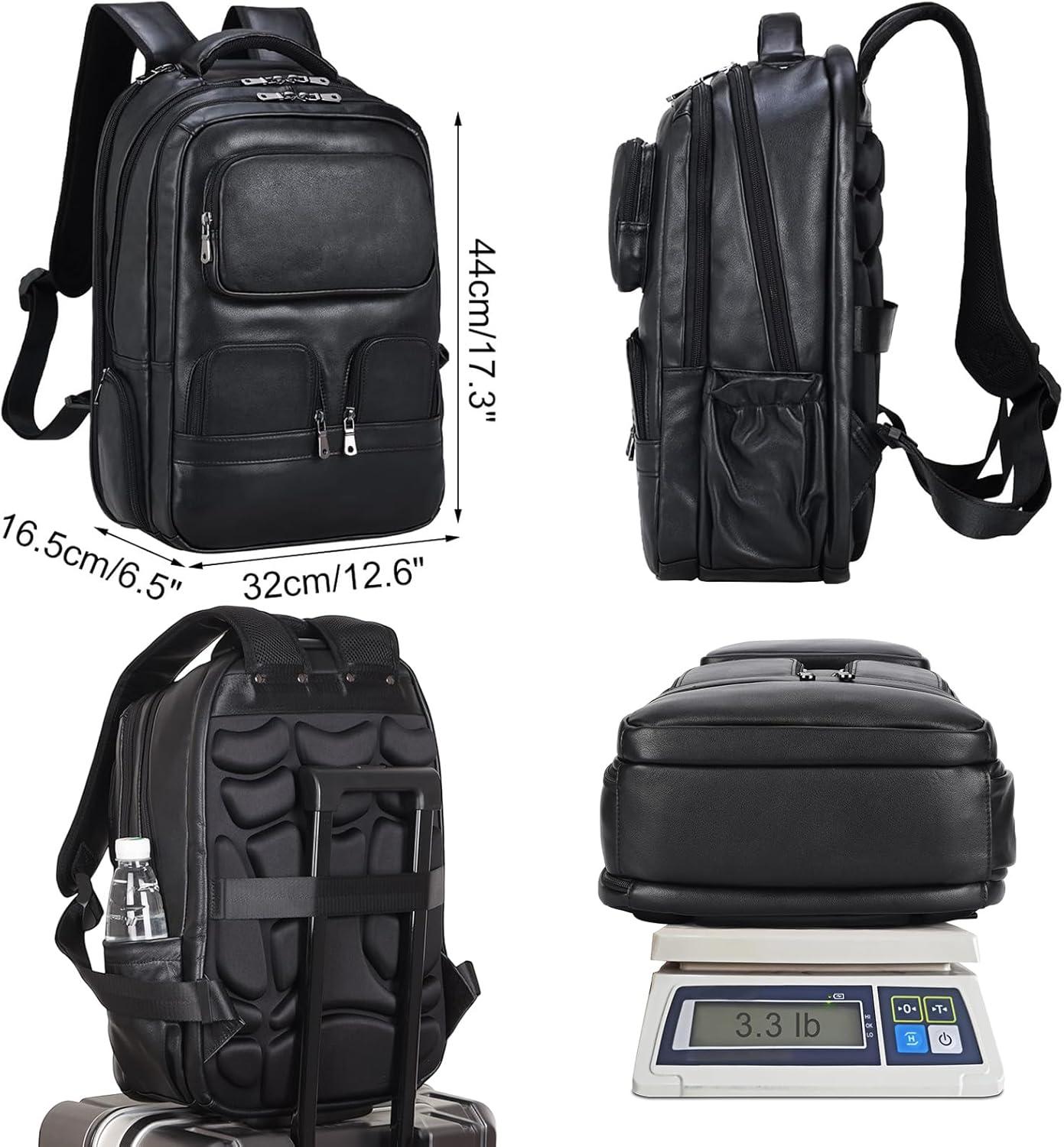 【Multi Purpose and Purchase with Confidence】The leather men's backpack is for business travel, outdoor hiking, camping, overnight trip. Large storage can accommodate 15.6 inch laptop, travel accessories, clothes, files, tablet, shaver, wallet, glasses case. One year quality commitment since you purchase the bag. If you have any issue with the product, please reach us for help.