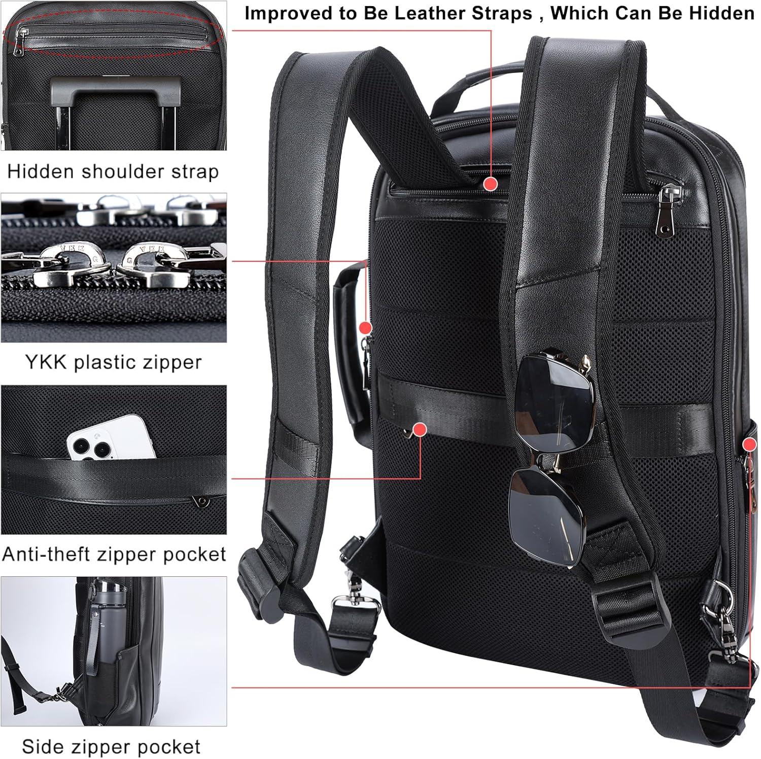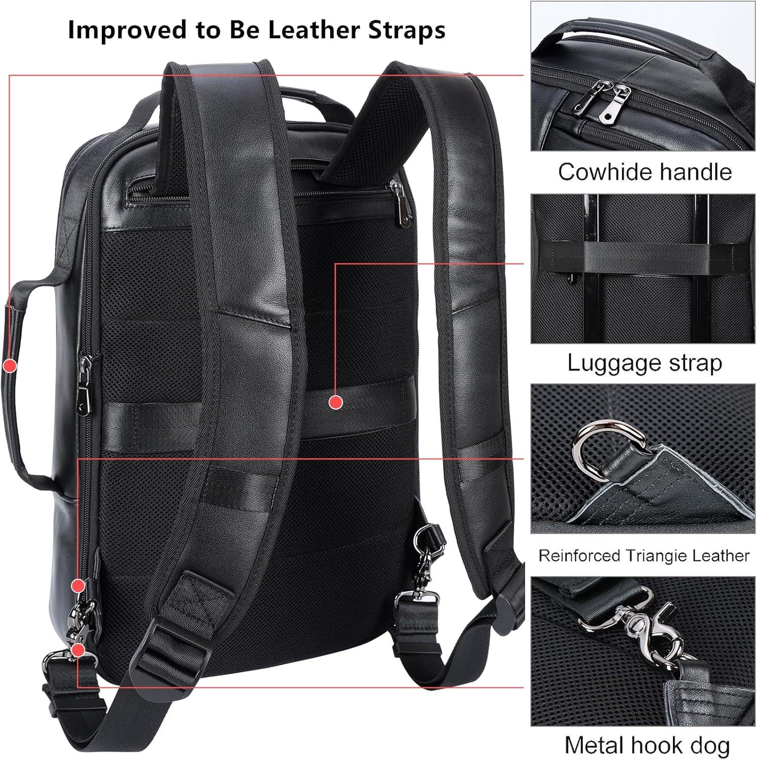 【Multi Purpose Leather Backpack】Designed for men who like vintage diestressed style, the leather bag will gain character and patina with use. It fits for business men, executives, office workers, lawyers as daily business daypack, commuting backpack, laptop backpack, business travel or short trip bag after it is expanded. Good gift to him on Birthday, Valentine’s day, Father’s day, Christmas, New Year. Note: the bag has removed USB port and shoulder straps are improved to be leather.