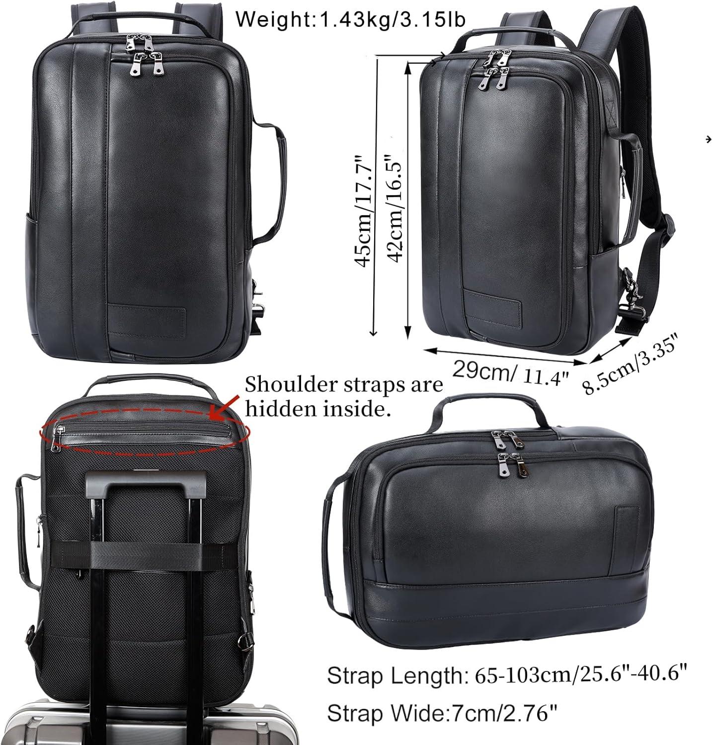 Masa Kawa Leather 15.6″ Laptop Backpack for Men Convertible Briefcase Backpacks Expandable Vintage Business Work Travel Rucksack Daypack, Light Brown(Black)