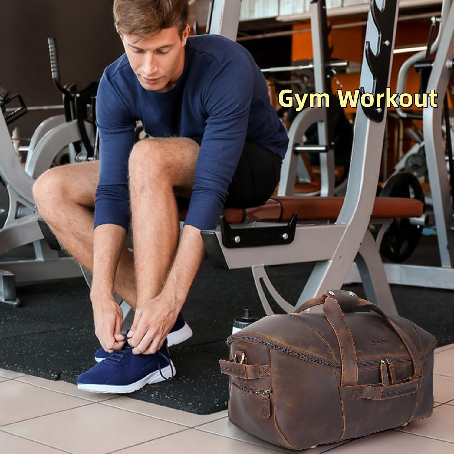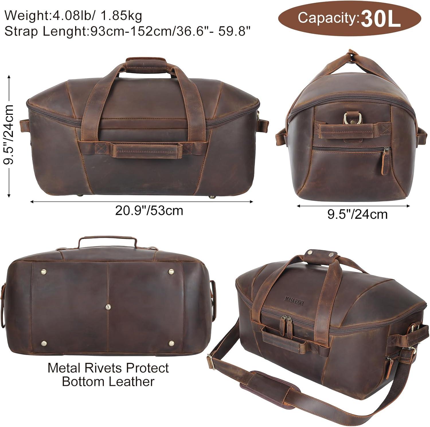 Masa Kawa Leather Duffle Bags for Men Travel Gym Cowhide Weekender Overnight 30L Carry on Luggage Duffel Bag with Dividers Toiletry Wet Pocket, Vintage Brown