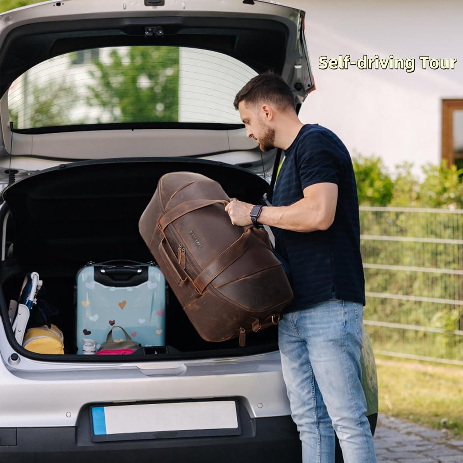 【Unique Gift to Him with Confidence】Handmade by artisans, with natural texture of cowhide, each bag is unique due to slightly different leather pattern, just like your unique love to him. The leather travel bag is good gift for your husband, friends, family members on birthday, anniversary, Valentine's day, father's day, Christmas. 1 year quality commitment since you buy the men's weekend bag, please reach us for help for any questions.