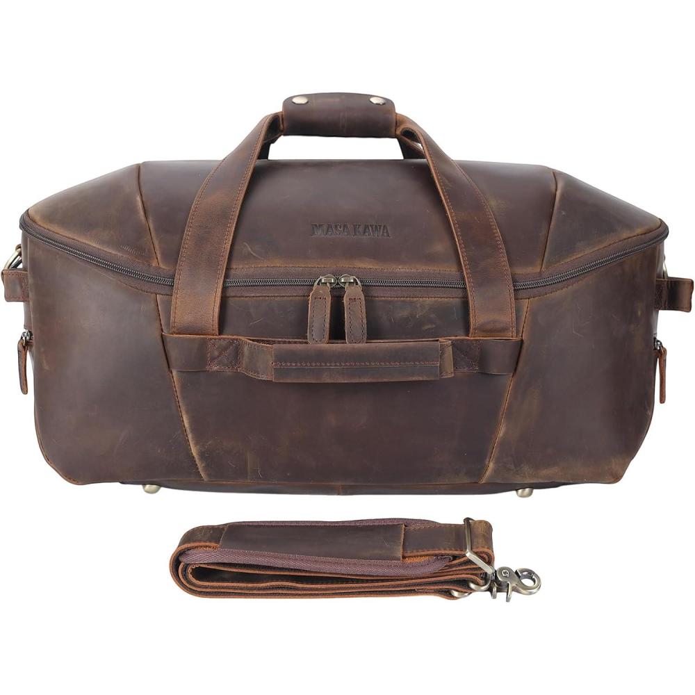 imageMasa Kawa Leather Duffle Bags for Men Travel Gym Cowhide Weekender Overnight 30L Carry on Luggage Duffel Bag with Dividers Toiletry Wet Pocket Vintage Brown