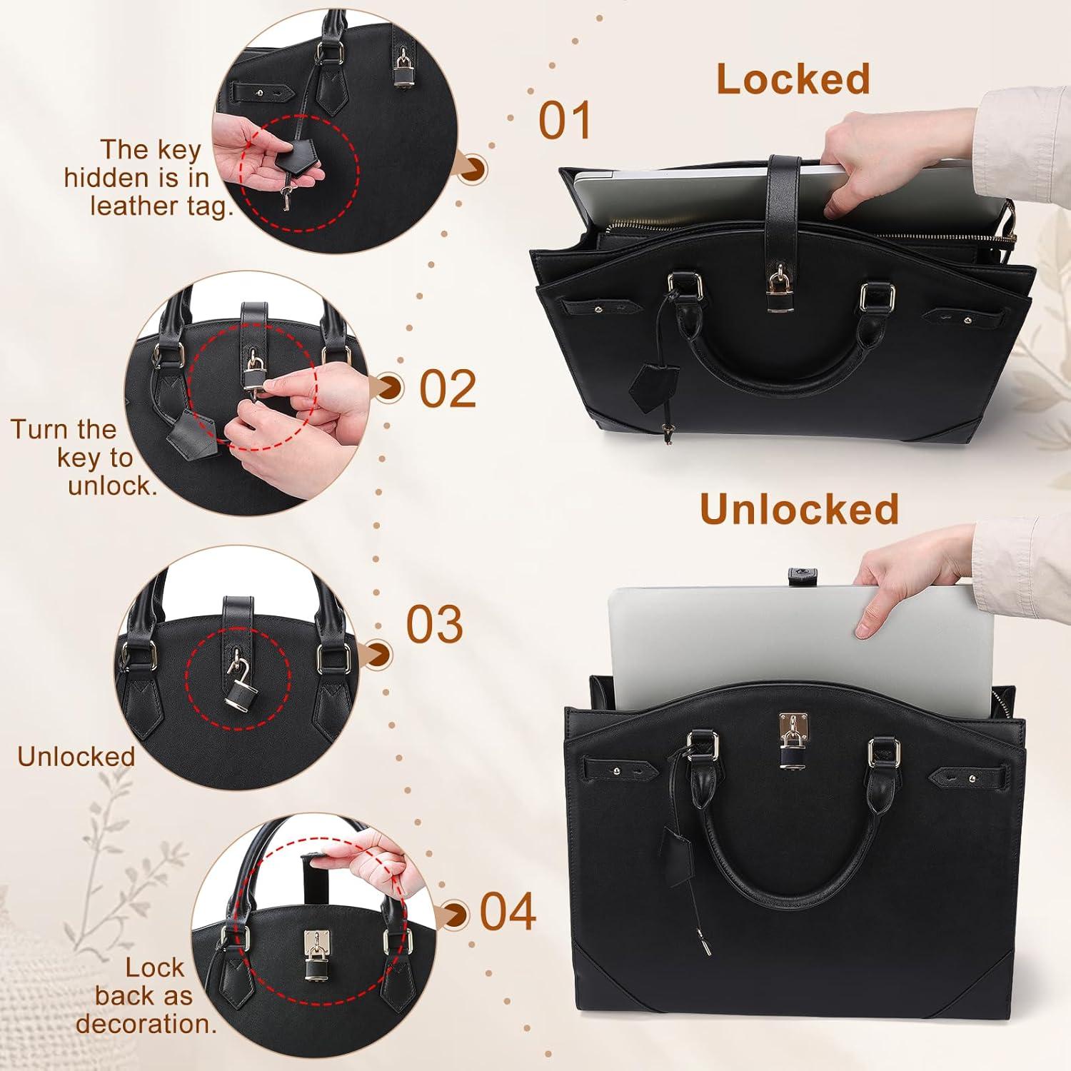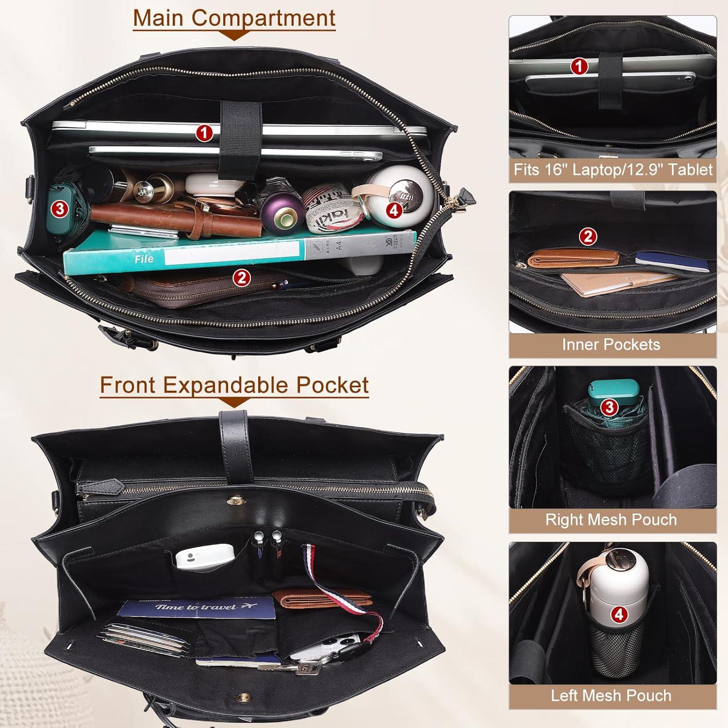 imageMasa Kawa Leather Work Laptop Tote Bag for Women 16 Computer Shoulder Handbags Expandable Antitheft Business Briefcase Attache Case Large Black  Waterproof with Bottle Holder