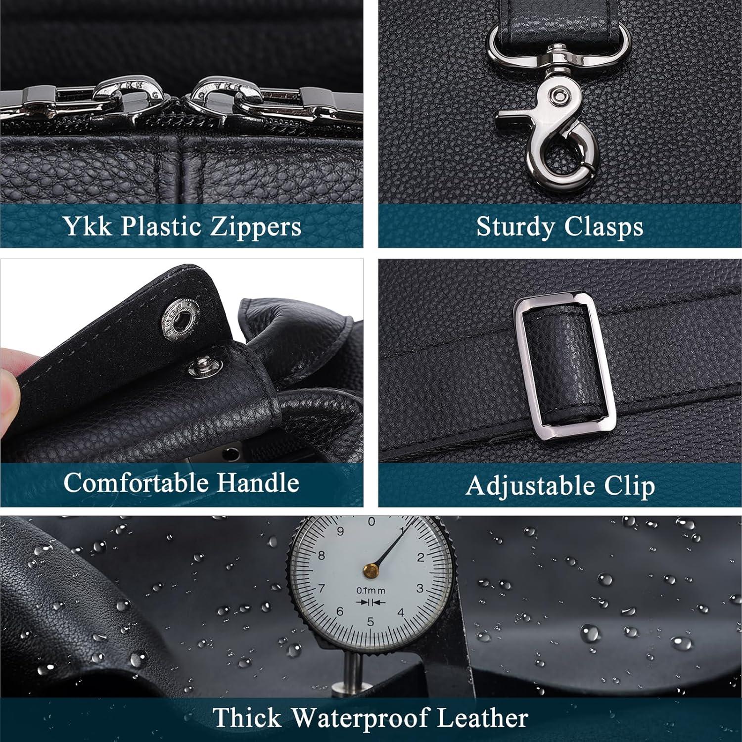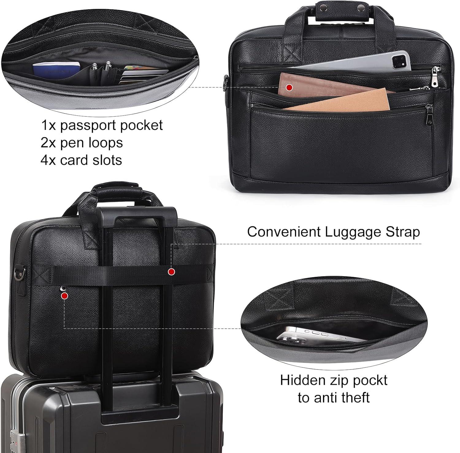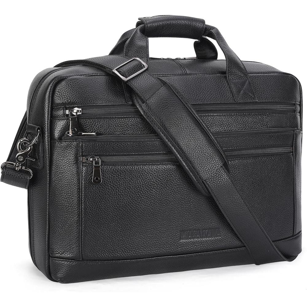 Masa Kawa Men’s Leather Briefcase for 16″ Laptop Waterproof Crossbody Shoulder Messenger Bag Computer Attache Case for Business Travel Work, Black