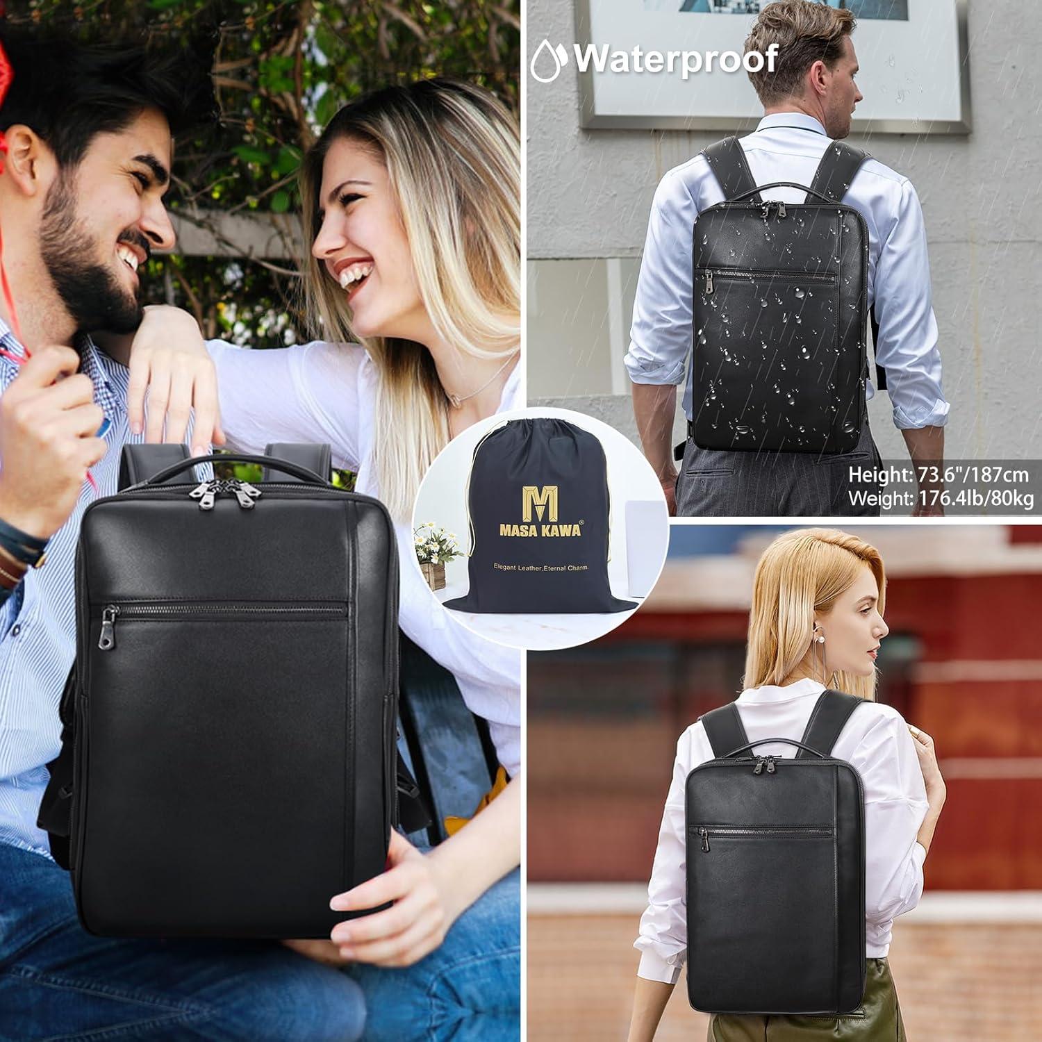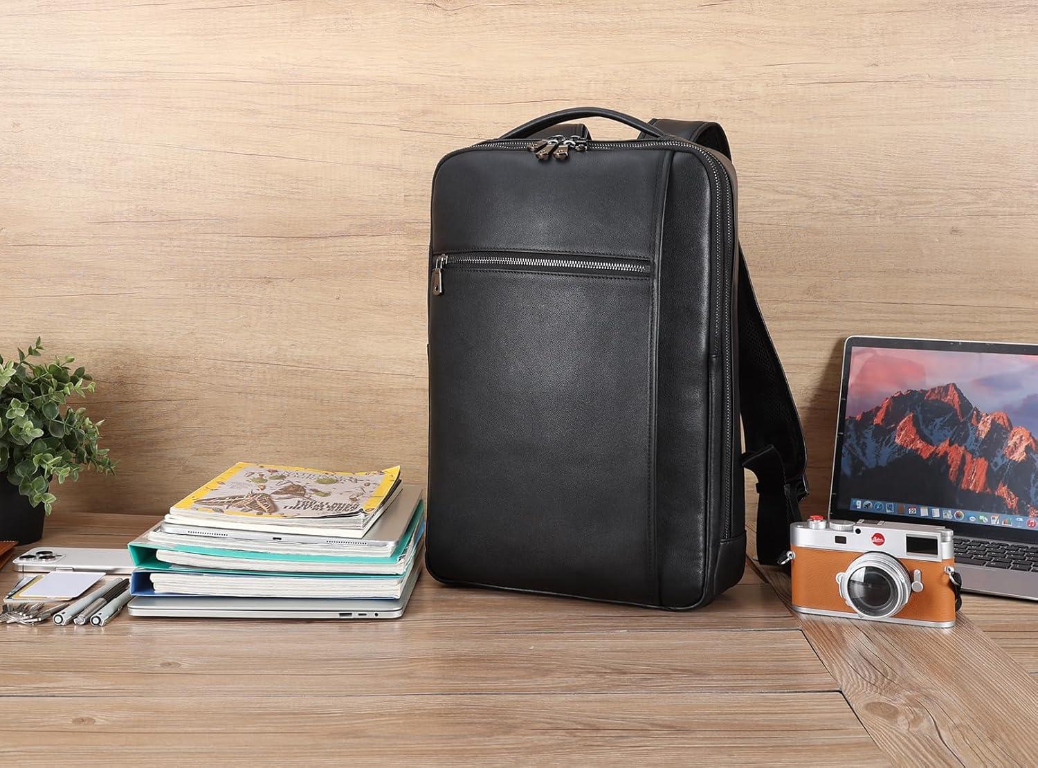 【Comfortable Leather Backpack】The back of the leather bag is made of breathable mesh panel, which is friendly to your body. 1 year commitment since you buy the leather slim laptop bag for men and women, if you have any questions, please reach us, we will help you to resolve issues. This women's and men's leather business work backpack is a gift choice for birthday, anniversary, Valentine's day, father's day, Christmas,and New Year. It comes with a black cloth anti dust gift bag.